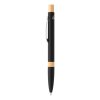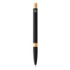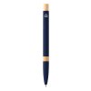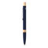 Kuličkové pero z recyklovaného hliníku s bambusovými částmi, pogumovaným povrchem a chromovým klipem. Se speciální vrstvou pro zrcadlové laserové gravírování. S modrou náplní.