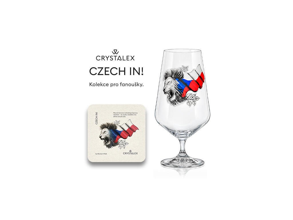 Fanděte našim ve velkém stylu! A jak jinak, než ve společnosti sklenice na pivo Czech In, která ve svém dekoru nese symbolický motiv orlice. Jedinečnou skleničku zasíláme spolu s originálním podtáckem v dárkovém balení Crystalex.